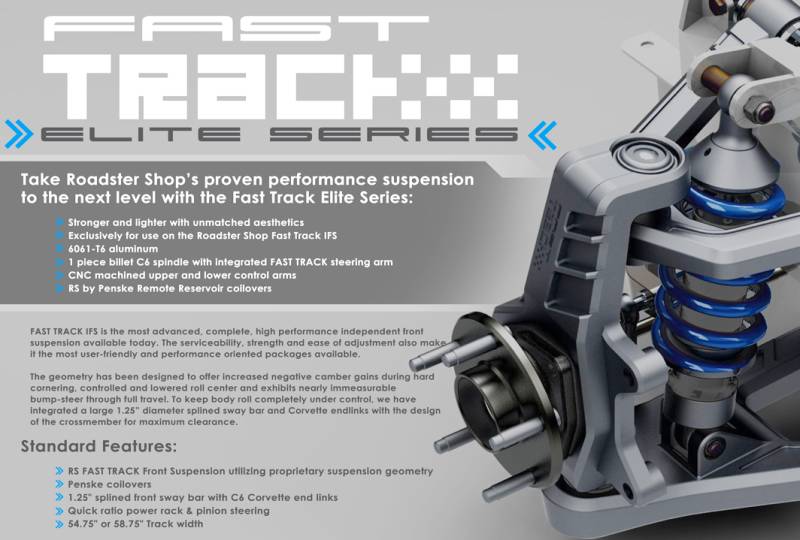 By choosing a Roadster Shop FAST TRACK 1959-1964 Cadillac Chassis, you can transform your classic Caddy into a vehicle with cutting edge ride, handling, braking, acceleration and driveability. Suited as much to a coast to coast cruise as it is to setting blistering lap times at the autocross track.