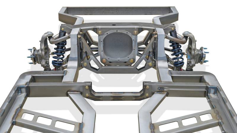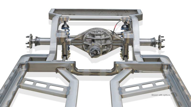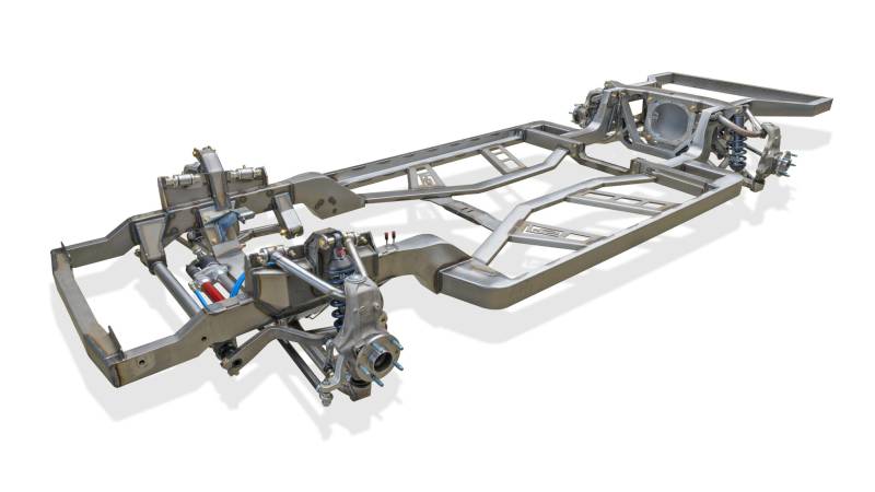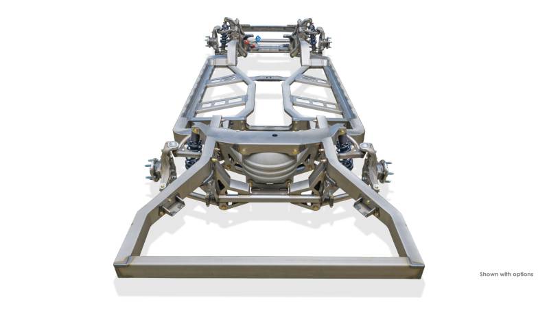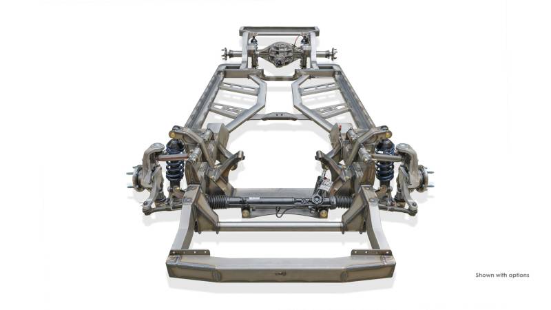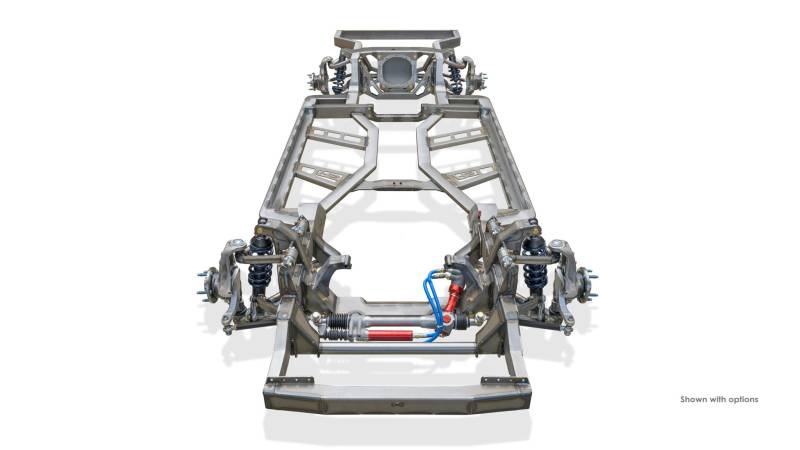 The Mustang FAST TRACK chassis is built upon our fully hand fabricated, 10ga steel, fully boxed, perimeter frame rails. The unique design of this chassis combines the strength of the chassis with the uni-body structure for an unbeatable combination. The chassis is also designed to provide greater interior cabin space between the inner rockers for more seat options. The FAST TRACK chassis features a custom center crossmember with adjustable drop out transmission bracket and a custom mid-brace crossmember with fabricated exhaust ports to accept up to 3″ exhaust. We also build each chassis to your specific motor and transmission combination.