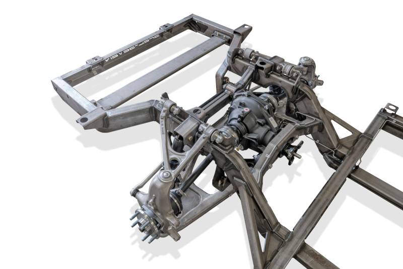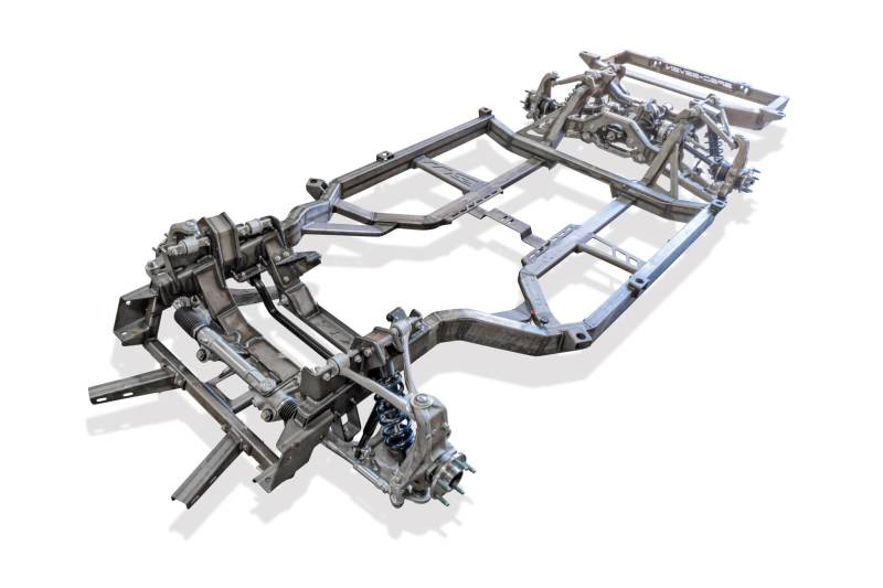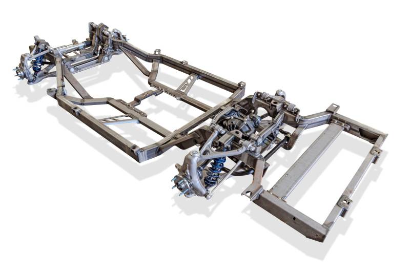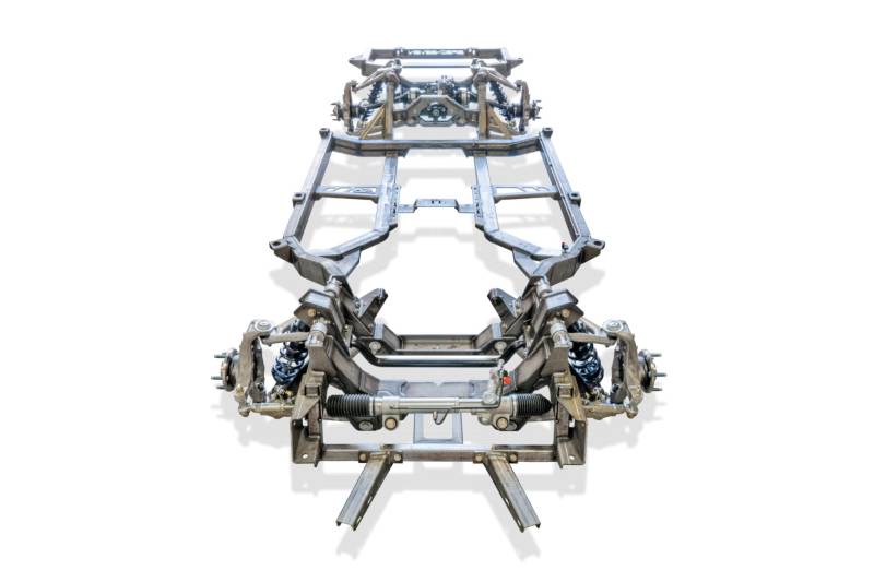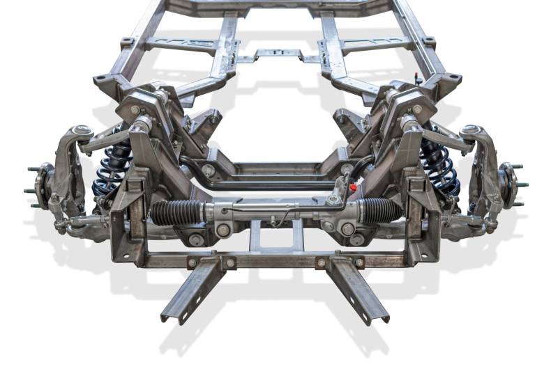 The SPEC7 utilizes the latest GM technology by incorporating C7 Geometry through the use of OEM components. Serviceability and price point are the bi-product of factory GM component integration. For years, builders have looked to the C6 /C7 platform for their early ‘Vettes. Unfortunately, the wider track width requires the use of less than desirable flush, factory style wheels. RS has solved that problem by engineering the SPEC7 chassis to retain C7 components and geometry while packaging them in an impressive 56” track width, allowing for period appropriate wheels with a more visually desirable offset.