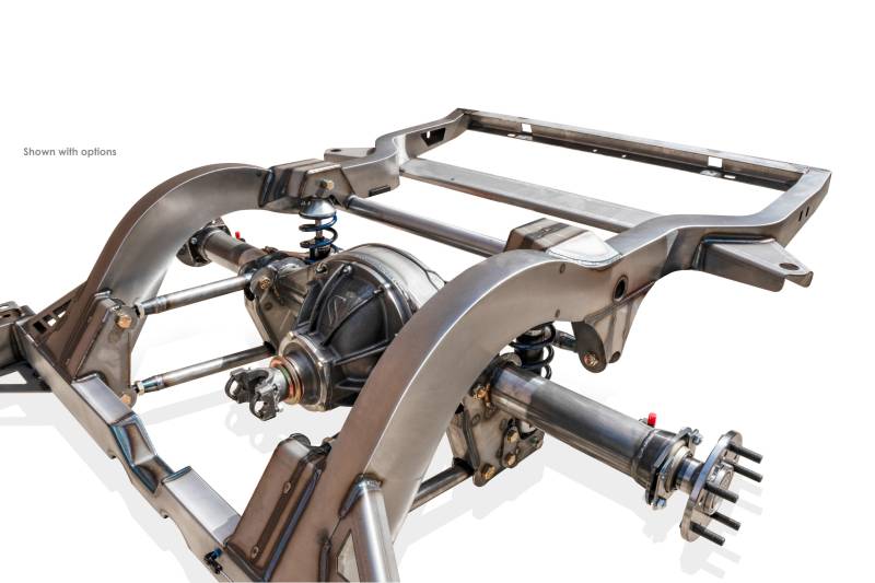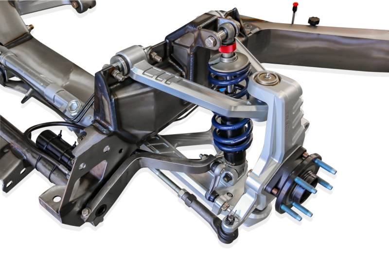 Bringing handling and ride quality to the forefront, the FAST TRACK front suspension uses proprietary geometry utilizing the proven Corvette ZO6 spindle. Increased camber gain and a lower, controlled roll center allow for significantly improved handling and drivability. The FAST TRACK IFS employs the use of large diameter 1 5/8″ lower control arms and 1 ¼” upper control arms for strength and they have been specifically designed to accept a wider wheel and tire combination without losing turning radius. We also incorporate a 1.25′ splined sway bar as standard equipment for increased roll resistance during excessively hard cornering. Our control arms also use a machined and serviceable Delrin bushing for less deflection and a long service life.