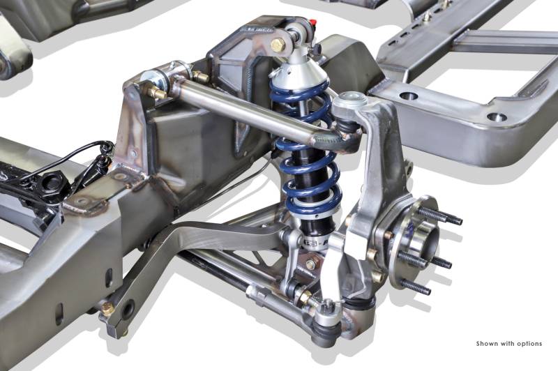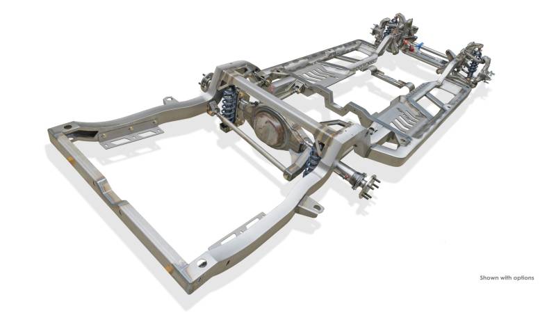Improvements such as torque boxes and 10 gauge boxed rails strengthen the previously weak design elements of the factory chassis. The whole chassis sits closer to the body for a clean finished appearance. Rear framerails have been narrowed to accommodate a 12″ wheel with a 345 section tire. The entire chassis has been designed front to back with the emphasis on modern day performance requirements and serviceability. The FAST TRACK chassis also allows a lower, more aggressive stance that features true drivability and a packaging design that maximizes ground clearance for enjoyment in all road conditions.