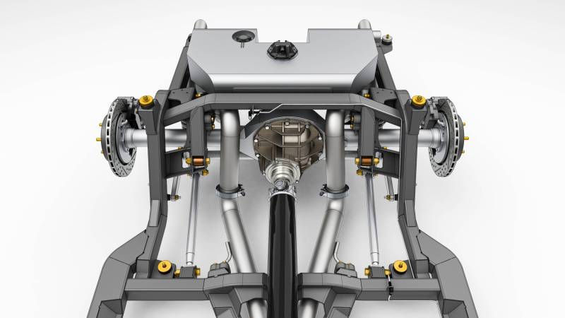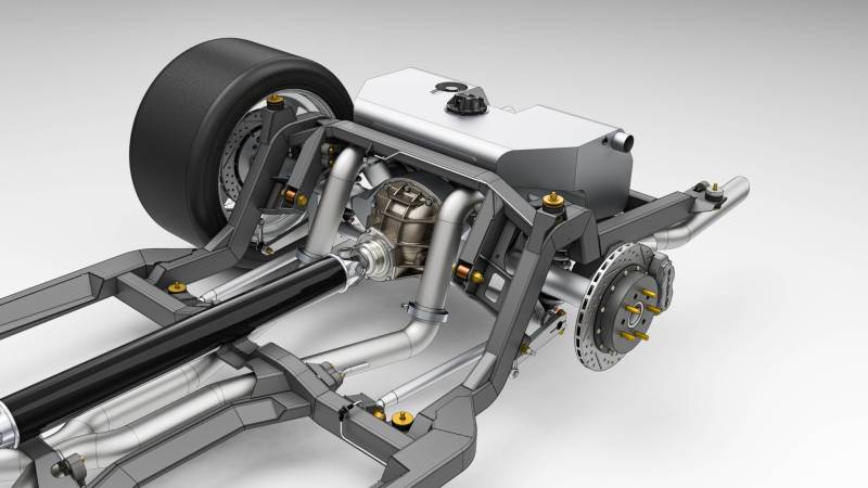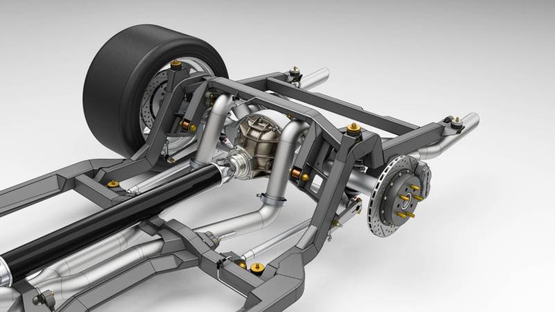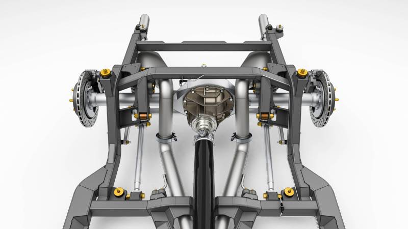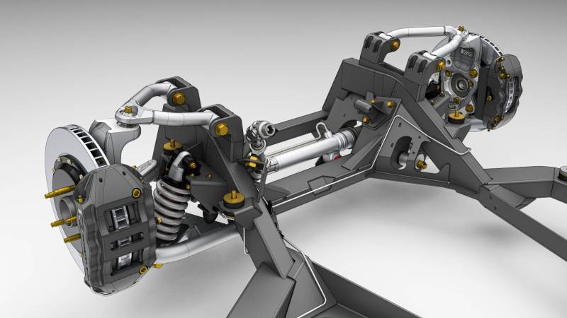 Ease of installation was central to the design. The SPEC Chassis uses supplied 3D-printed jigs and templates for body mods that are straightforward, non-structural, and do not impact the interior or trunk space. Shock towers can even be deleted, creating a clean engine bay with room for superchargers, turbos, or other power adders. A universal adjustable transmission mount works across a wide range of manual and automatic options, ensuring compatibility without costly adapters.