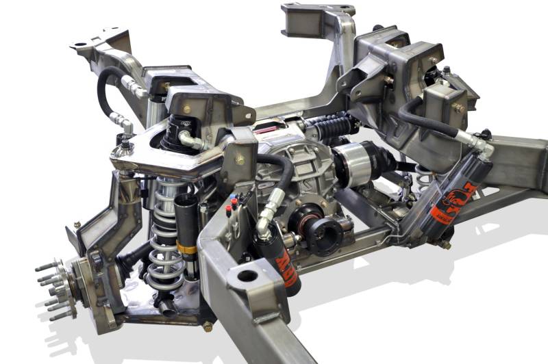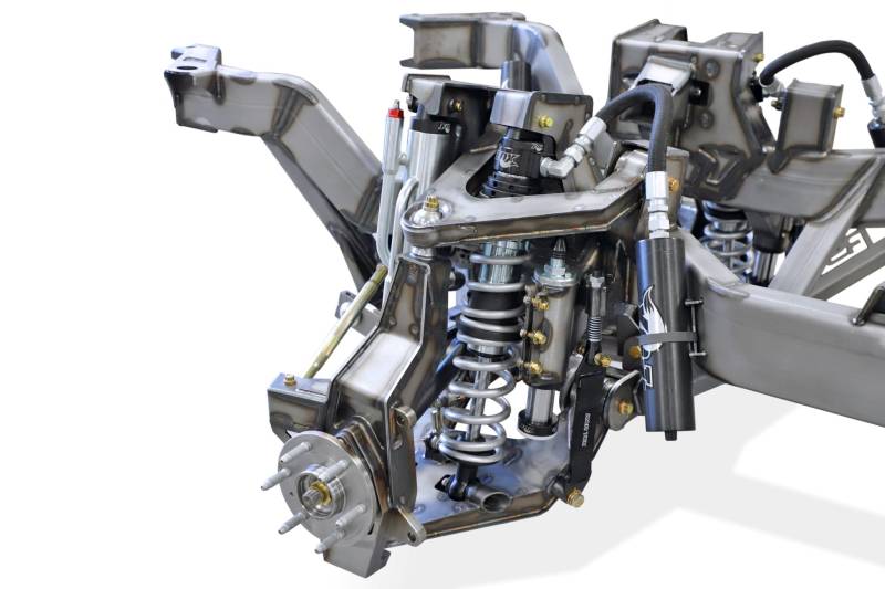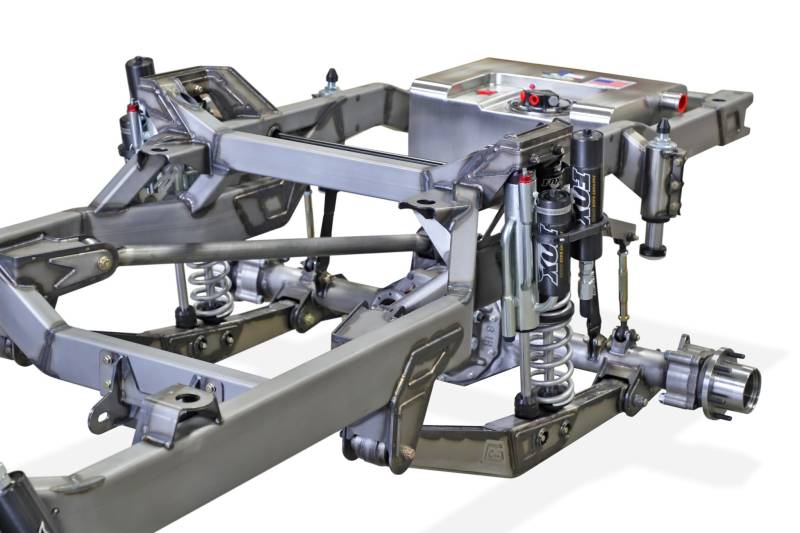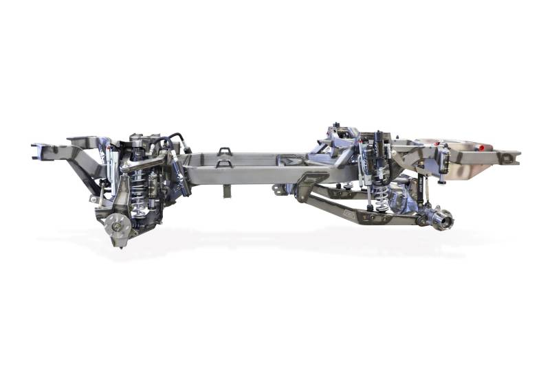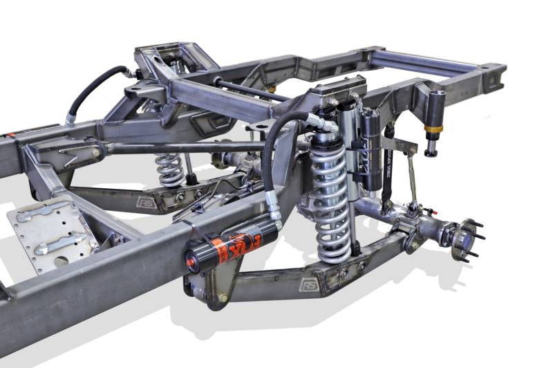 Offering 12″ travel in the front and 13″ in the rear, we created this chassis with the smaller body of these classic trucks in mind. Dual rate springs optimize ride quality and performance working with 2.5 Fox Factory race series smooth body shocks. We also configured this package to accept Coyote/6R80 or LS/4L80 drivetrain packages with an Atlas 2 Speed transfer case. The RS4R chassis was also designed to allow the use of 285 series tires and +17″ wheels on all four corners without the need for fender opening mods.